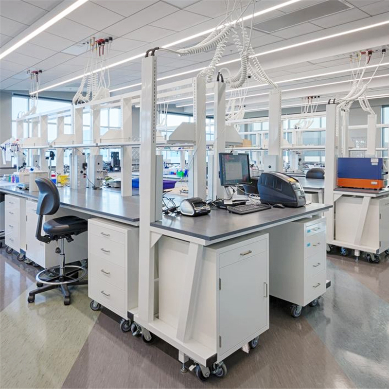 臺面上方預設了四個功能柱四面都可安裝功能配件,其間預留的管道也可方便連接水、電、氣路,滿足用戶開展實驗的各種需要。